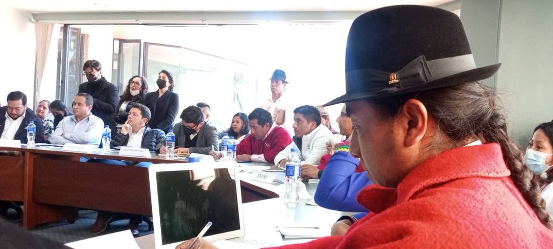 En la contraparte está Leonidas Iza, presidente de la Confederación de Nacionalidades Indígenas del Ecuador (Conaie), junto a representantes de la Confederación Nacional de Organizaciones Campesinas, Indígenas y Negras (Fenocin) y el Consejo de Pueblos y Organizaciones Indígenas Evangélicos del Ecuador (Feine).