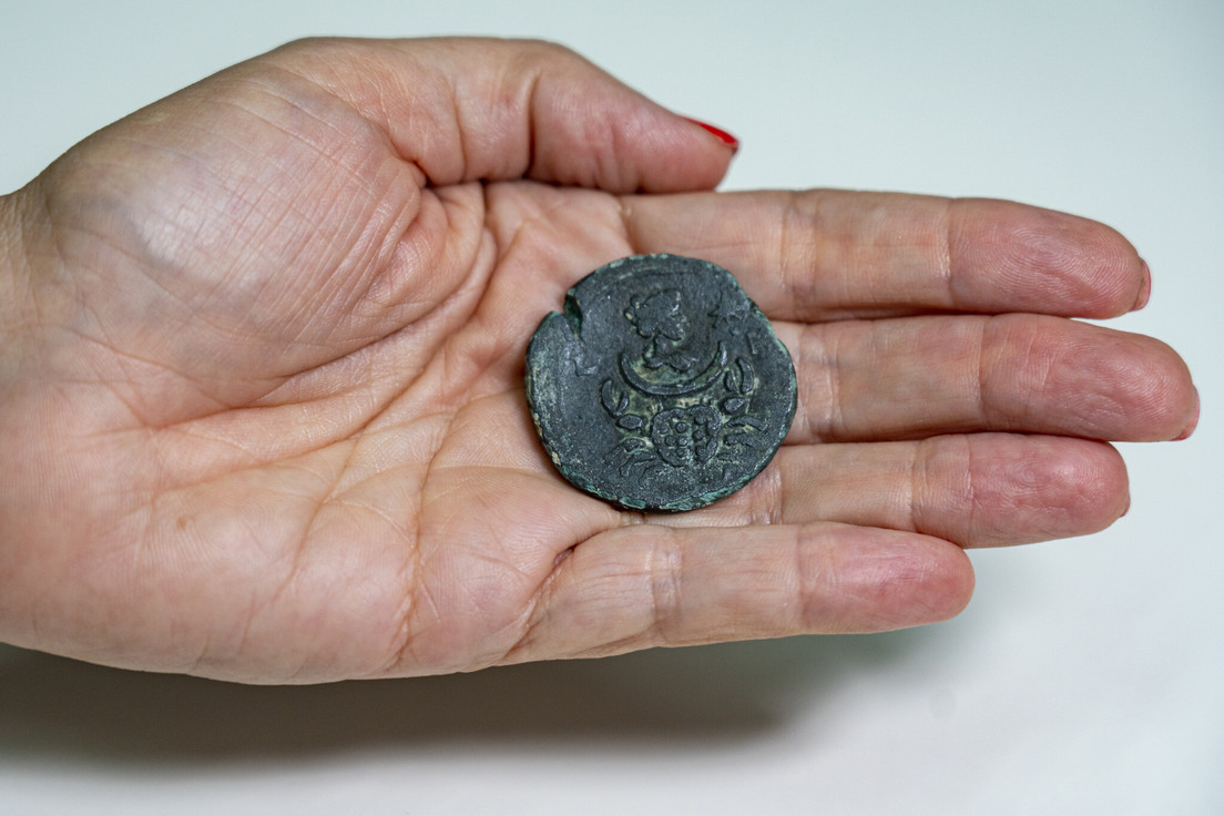 Una moneda romana de bronce en buen estado de conservación acuñada durante la época del emperador Antonino Pío, en el siglo II después de Cristo, fue recuperada durante una investigación arqueológica submarina en la costa de Israel, cerca de Haifa.