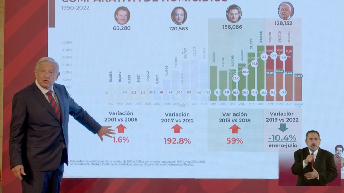 La estrategia de seguridad también es clave en el cuarto informe de Gobierno. Recientemente, la Administración de López Obrador destacó una "tendencia a la baja" en los homicidios dolosos registrados en el país latinoamericano.
