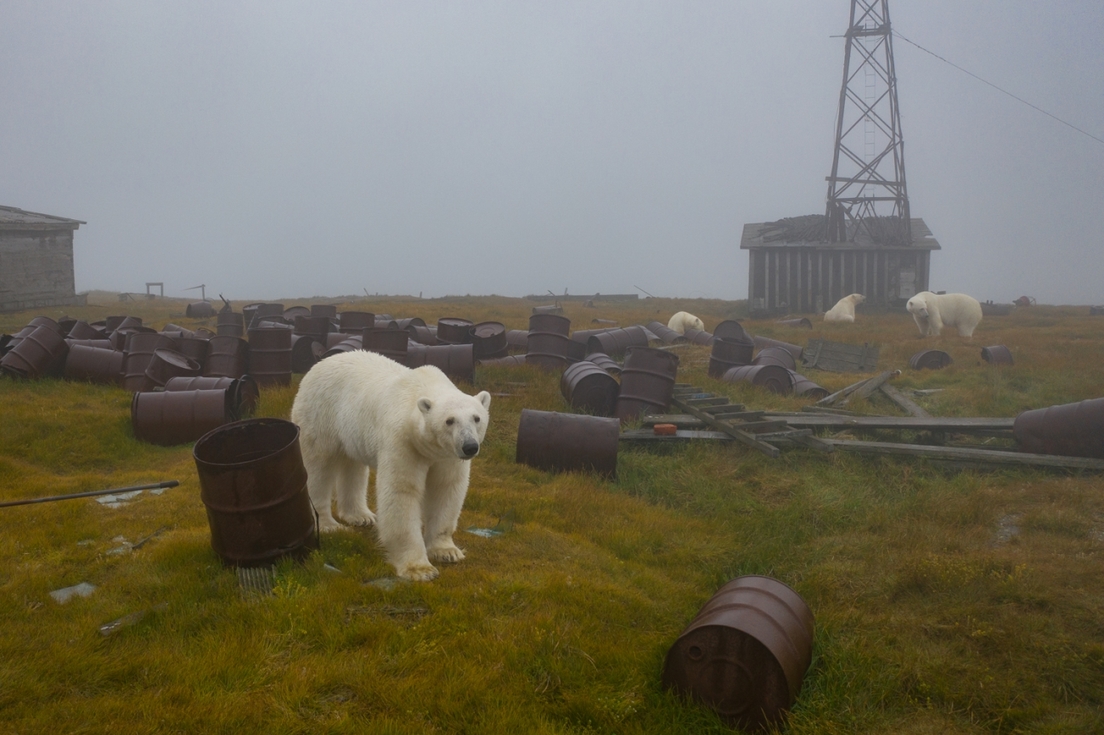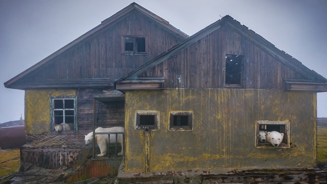 Tras ver movimientos extraños en las ventanas de un pueblo abandonado, observó los hocicos de unos 20 osos polares. La mayoría de los depredadores eran machos que vagaban entre las casas vacías, mientras que las hembras se quedaban con sus crías.