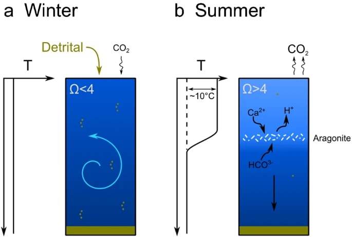 La precipitación de este compuesto en el océano es mayoritariamente provocada por organismos vivos y es el resultado de un proceso muy complejo. Sin embargo, señalan los académicos, los resultados de su investigación demuestran que este proceso puede ser inducido cinéticamente por el calentamiento del agua superficial y la estratificación prolongada, que resulta en un estado de saturación de aragonito.