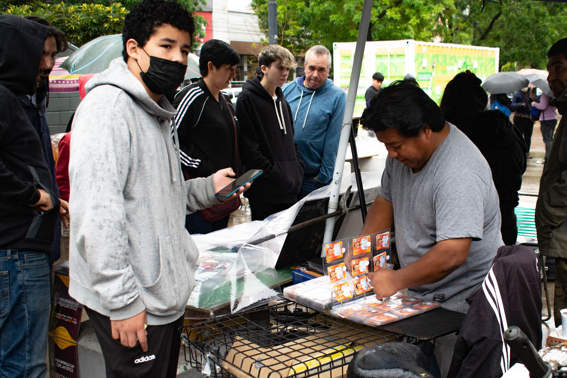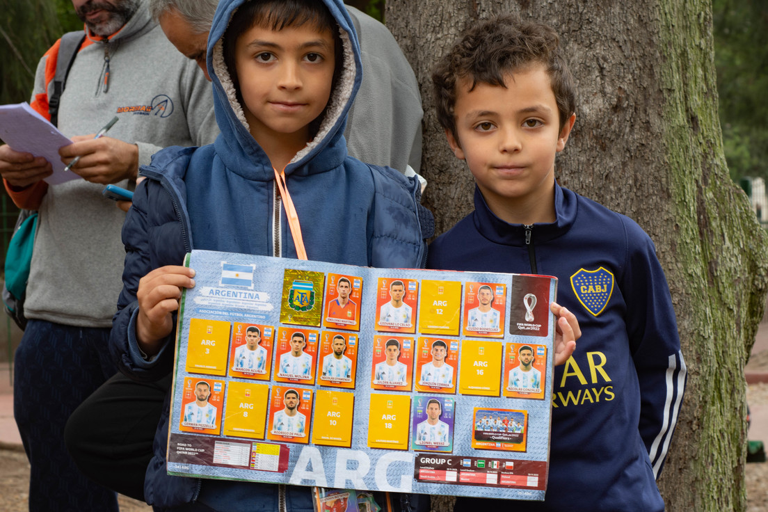 Resguardado bajo un árbol, sostiene un importante manojo de cromos y explica la diferencia que nota ahora respecto a las ediciones anteriores: "Como no se consiguen figuritas en los comercios, se ha generado una reventa que antes no existía. También vas a ver que los que intercambian son los padres, que están con los papeles en la mano mientras los chicos se sientan a esperar", dice como justificando el amplio margen generacional.
