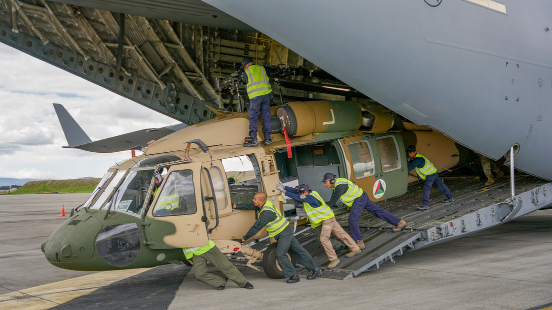 Previamente, el jefe del programa de aviación de la sección de Asuntos Antinarcóticos de la embajada de EE.UU. en Colombia, Jonathan Low, indicó que las siete aeronaves son parte de un total de 12 helicópteros que entregará Washington a Bogotá. Los primeros tres 'Black Hawk' llegaron a territorio colombiano el 19 de septiembre pasado.
