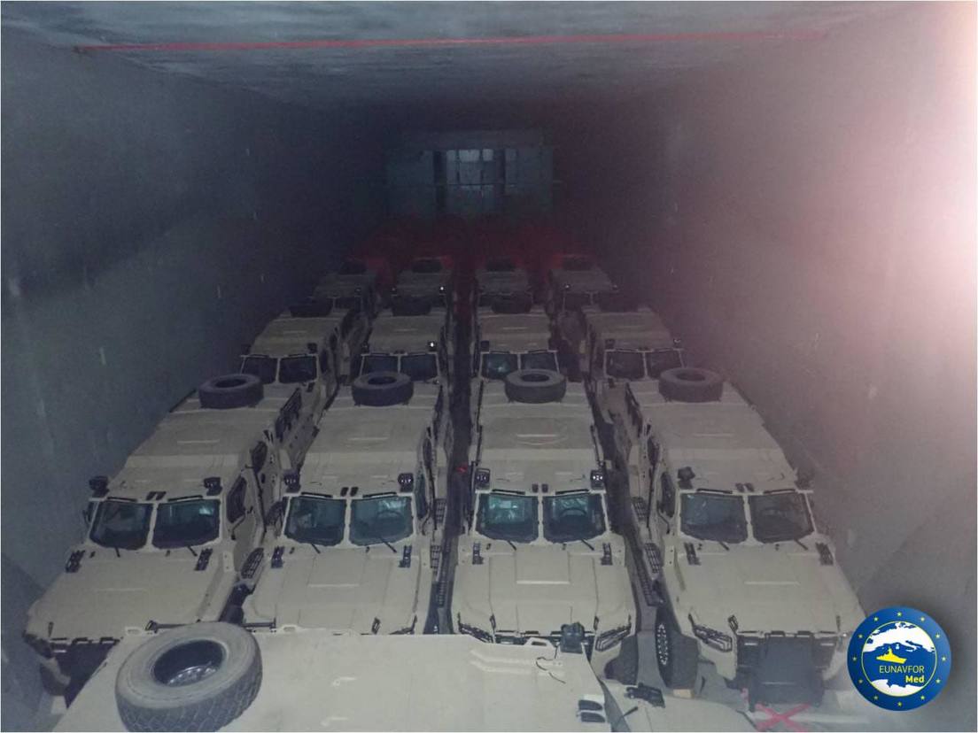 Buques de una misión especial de la Unión Europea interceptaron en el mar Mediterráneo la embarcación de carga general Meerdijk que transportaba 28 vehículos blindados, presuntamente con destino a Libia.