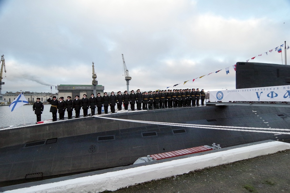 El submarino de ataque diésel-eléctrico Ufá del proyecto 636.3 de la clase 'Varshavianka', capaz de transportar misiles de crucero Kalibr-PL se ha incorporado a la Armada rusa. Este miércoles en San Petersburgo, se llevó a cabo una ceremonia para conmemorar el evento y se izó la bandera de San Andrés, símbolo oficial de la Marina del país.