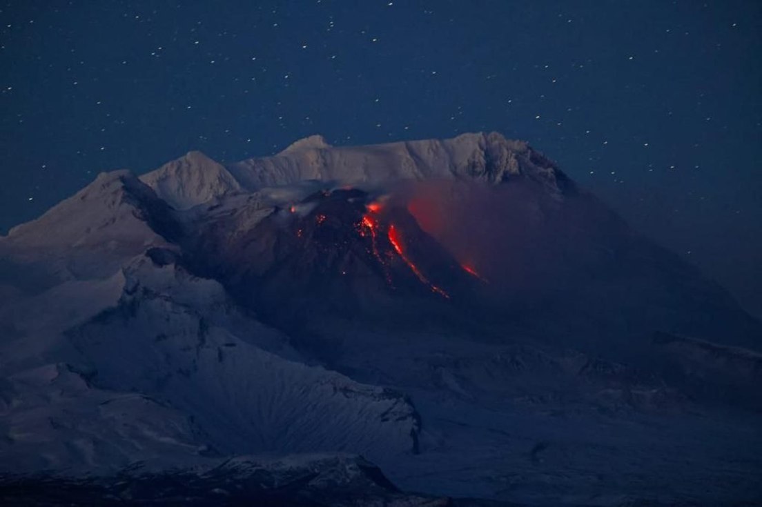 El Kliuchevskói, el volcán activo más alto de Eurasia, ubicado en la península rusa de Kamchatka, ha entrado en erupción este domingo. Los especialistas han registrado emisiones de magma con una frecuencia de hasta 10 explosiones por hora.