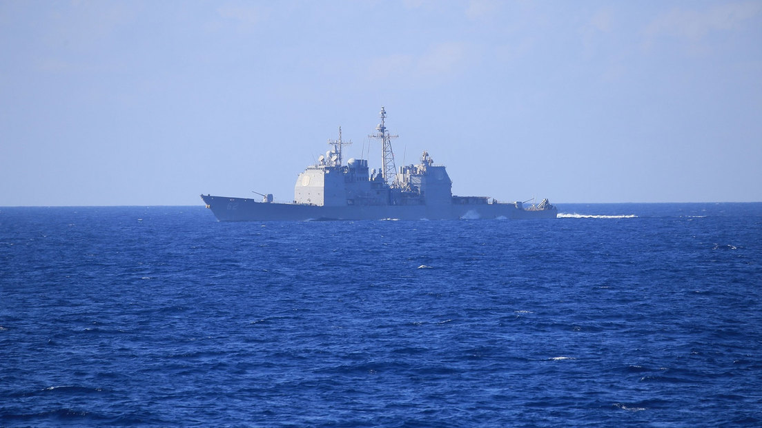 El Mando del Teatro de Operaciones del Sur del Ejército chino publicó fotos del crucero de misiles guiados estadounidense USS Chancellorsville, que militares chinos aseguran que este martes llevó a cabo una "intrusión ilegal" en aguas de las disputadas islas Spratly, en el mar de la China Meridional.