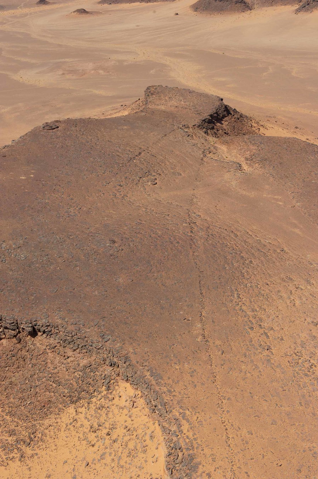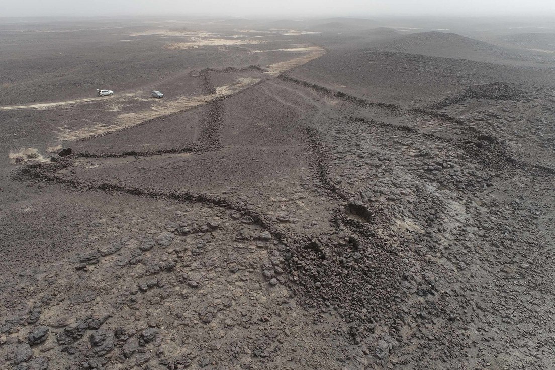 Recientes estudios de imágenes satelitales y drones en el desierto Harrat 'Uwayrid, Arabia Saudita, permitieron a los arqueólogos explicar unos extensos arreglos de piedra sobre la arena, en forma de V, que los pilotos de la Fuerza Aérea británica notaron por primera vez en la década de 1920.