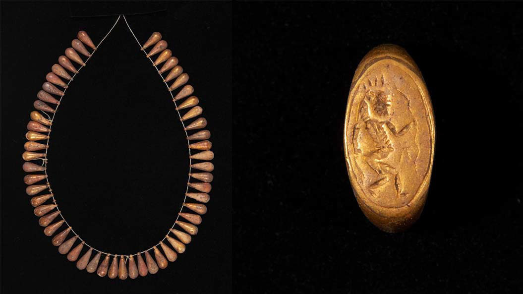 El profesor Gamal El-Samastawy, director general de Antigüedades de Egipto Central, mencionó que en el interior de la sepultura se encontró un conjunto de adornos de oro que consta de tres anillos 'Tawi', que significa 'la hija de la Señora de las dos Tierras', y además de un pequeño collar de cuentas de oro huecas.
