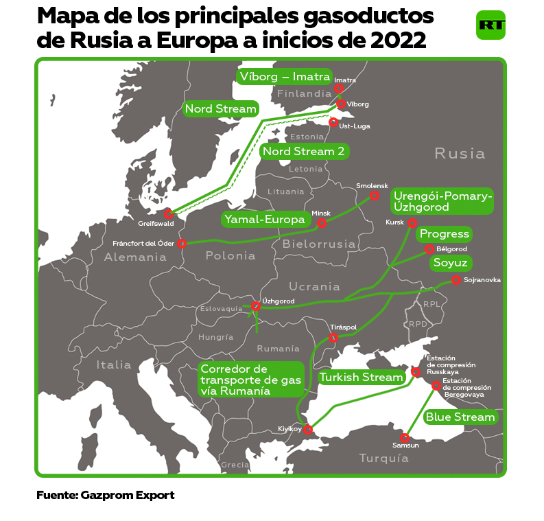 Mientras, EE.UU. ofrece suministrar gas a Europa con contratos a largo plazo. "Los estadounidenses han prometido dar un buen precio, pero solo como parte de contratos a largo plazo. Así que la fiabilidad, la capacidad de tener una perspectiva sostenible, es más importante que seguir cada día los zigzags de una bolsa u otra", aseveró el canciller ruso, Serguéi Lavrov.