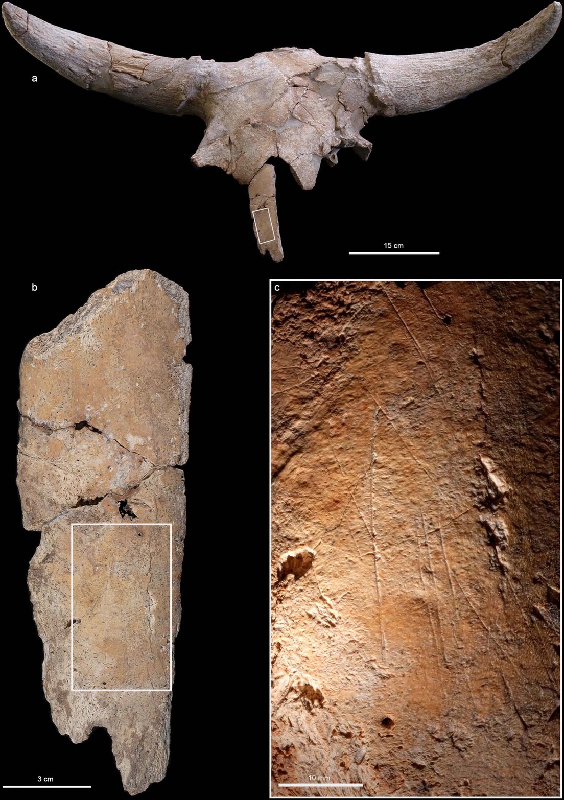 Según el estudio publicado en la revista Nature Human Behaviour este jueves, los restos hallados en un nivel de terreno de 27 metros cuadrados y 2 metros de profundidad de la cueva, son cráneos que pertenecen a bisontes, ciervos y rinocerontes, es decir, especies con algún tipo de apéndice, tales como cuernos y astas.