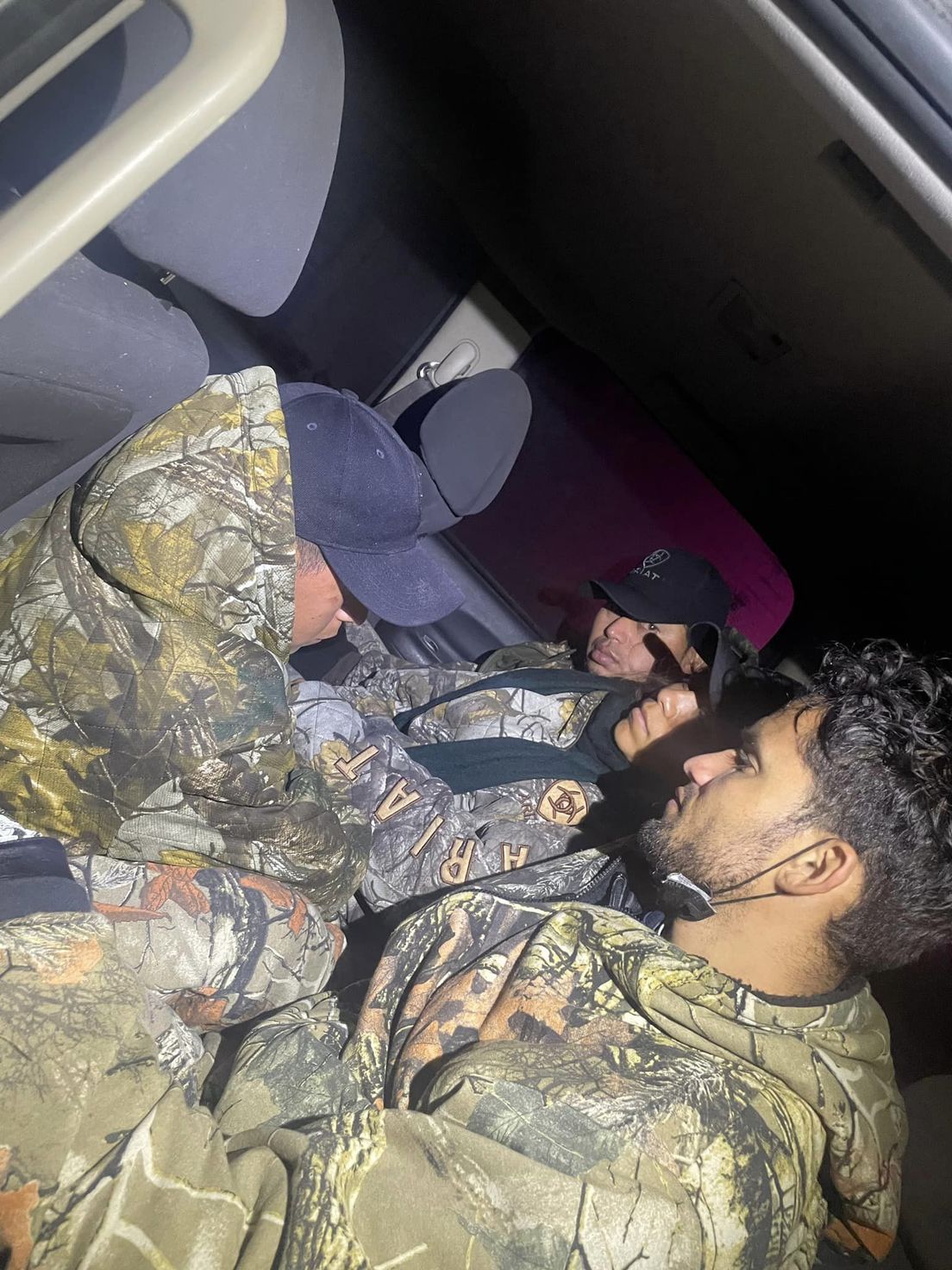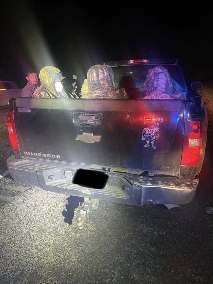 13 de ellos, con ropa de camuflaje, estaban hacinados en una pequeña camioneta a la que le dieron el alto por una infracción de tránsito. Cuando uno de los agentes fue a hablar con la conductora, vio a varias personas acostadas en la caja del vehículo.