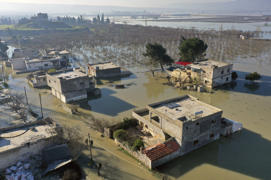 El pueblo de Tlul, ubicado en la provincia de Idlib, en el noroeste de Siria, quedó inundado por el derrumbe de una represa de tierra a consecuencia del potente terremoto que sacudió el país este lunes y se cobró la vida de miles de personas, recoge AFP.
