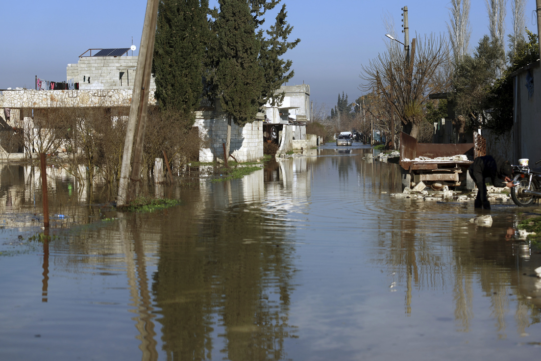Due to dam cracks caused by the #earthquake in #Syria, water has partially flooded rebel-held Tloul village in #Idlib province, forcing dozens of families to flee their homes 📸: AA pic.twitter.com/IbnR8oBev8