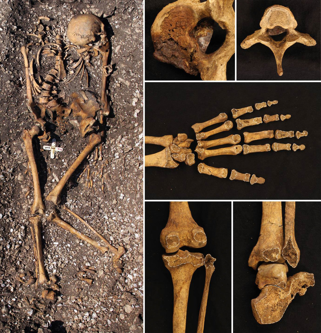 En los huesos de dos hombres adultos (uno de entre 27 y 44 años y el otro de entre 35 y 52), los científicos notaron numerosas lesiones infligidas con objetos afilados, así como una punta de hierro atascada en una vértebra de uno de ellos. Es posible que un tercer individuo muriera también de forma violenta, ya que sus restos presentan rastros de fuego.
