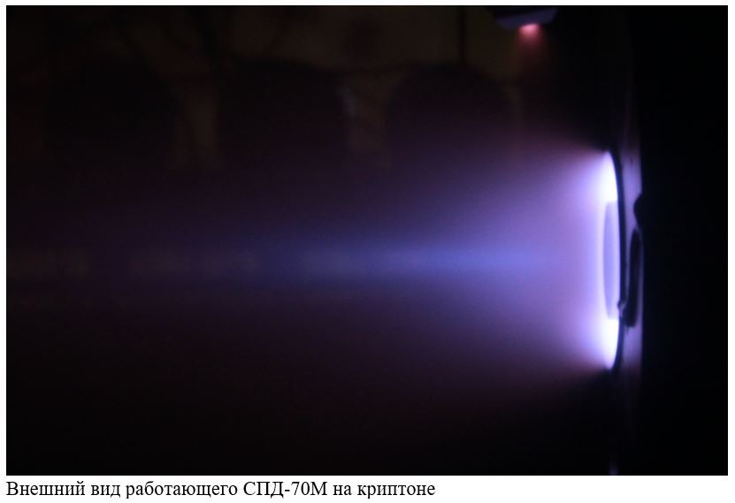 Este electrodo tiene la función de generar electrones, mediante un proceso conocido como 'emisión termoiónica', con el fin de producir iones que den el empuje necesario al motor. De acuerdo con el director general de OKB Fakel, Guennadi Abrámenkov, este nuevo motor se desarrolló sobre la base del SPD-70 de la época soviética, que funcionaba con xenón, pero con la desventaja que tenía un empuje mucho menor que su predecesor.