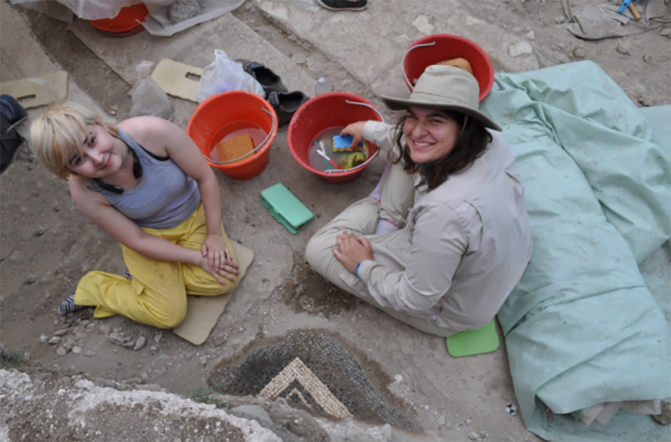 Los arqueólogos encontraron los mosaicos en dos de los cuatro nichos recortados en una habitación circular de la villa, uno situado en la parte noroeste de la habitación y el otro en la parte sureste.
