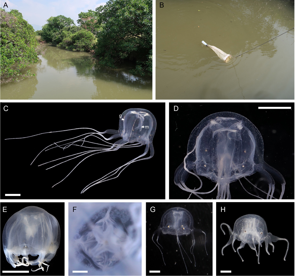 Un equipo de científicos dirigido por la Universidad Bautista de Hong Kong (HKBU, por sus siglas en inglés) ha descubierto una nueva especie de medusa de caja con 24 ojos en un estanque de la Reserva Natural de Mai Po, al noroeste de Hong Kong.