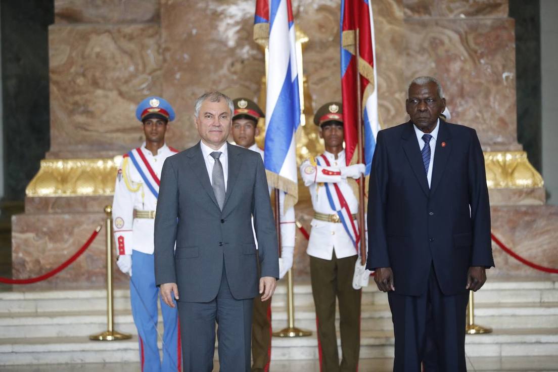 El presidente de la Duma Estatal de Rusia (Cámara Baja del Parlamento), Viacheslav Volodin, se reunió este sábado en La Habana con el presidente cubano, Miguel Díaz-Canel, en el marco de su visita a la isla junto con una amplia delegación parlamentaria del país euroasiático.