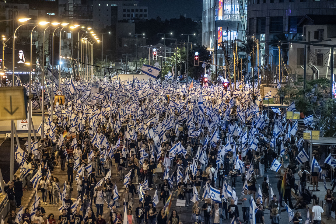 La principal protesta se realizó en el centro de la ciudad de Tel Aviv, que congregó entre 100.000 y 180.000 personas. Aunque a finales de marzo las autoridades decidieron aplazar la aprobación de la reforma hasta finales de julio, los manifestantes siguen presionando para que se derogue por completo.