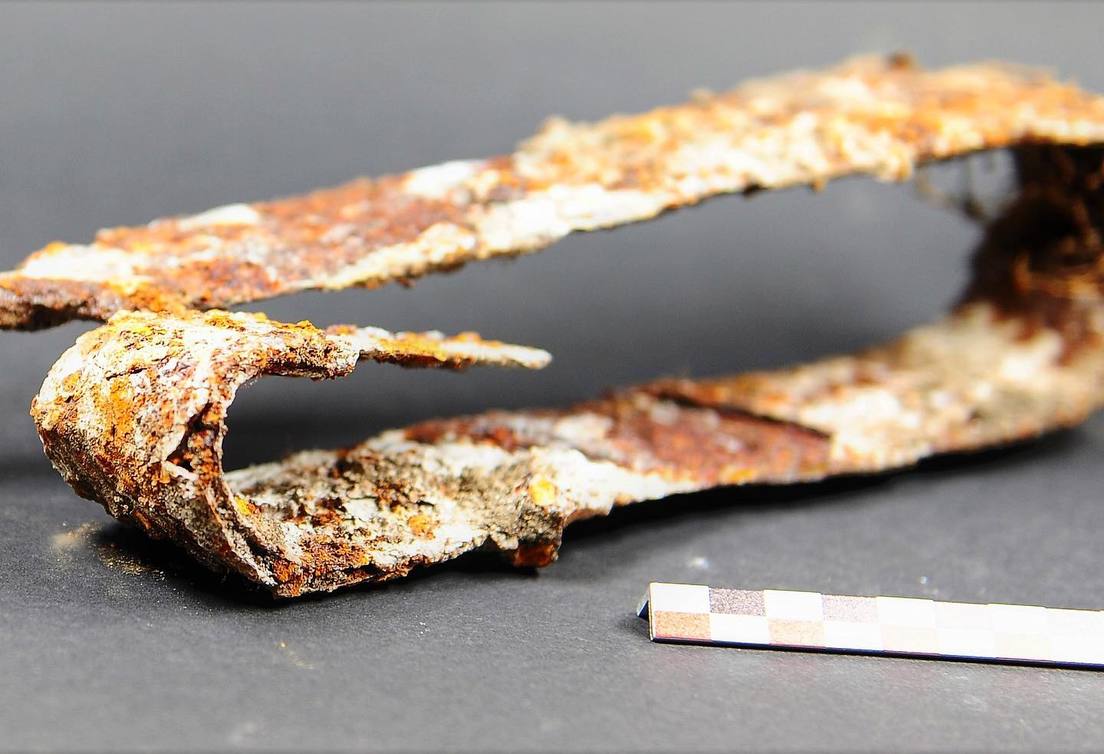 Los hallazgos más destacados son una espada doblada y unas tijeras en un estado de conservación "excepcionalmente bueno", prácticamente sin muestras de oxidación. Los científicos también describieron un fragmento de un escudo, una navaja, una cadena para un cinturón, una punta de lanza y una fíbula, un tipo de broche metálico que se usaba antiguamente para sujetar las prendas de vestir.