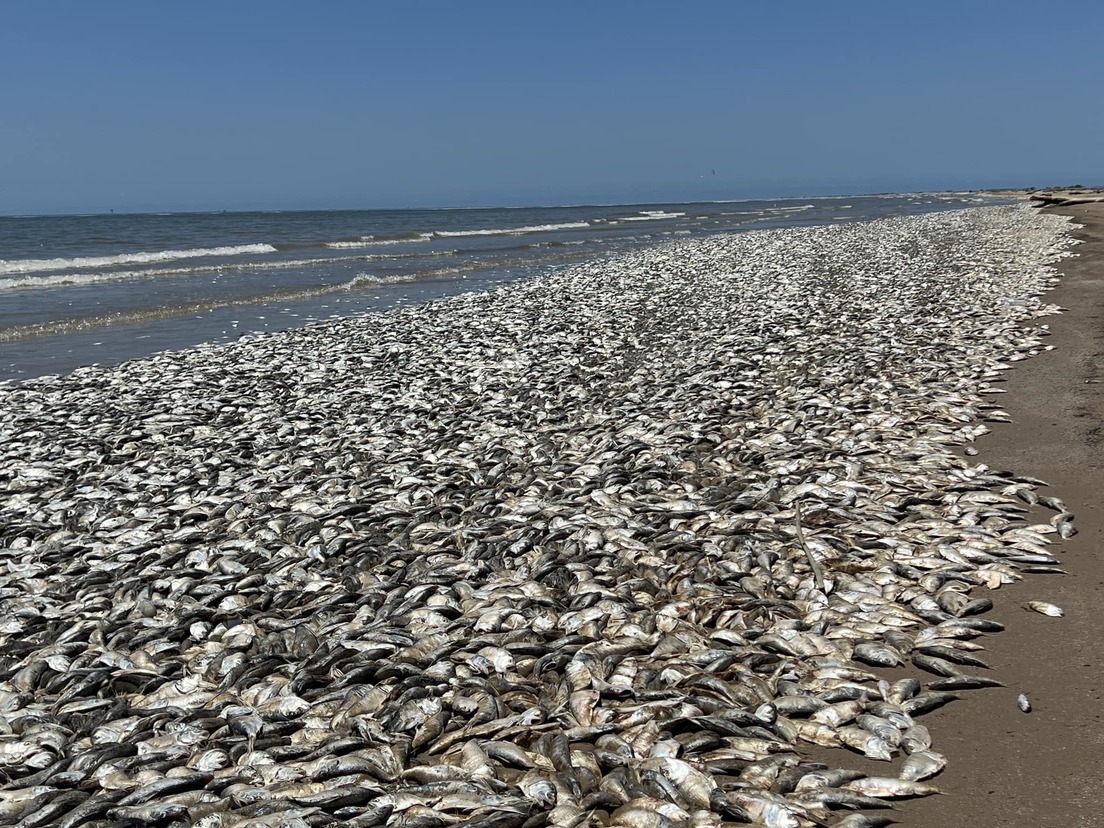 Miles de peces muertos llegaron arrastrados por la corriente a una playa de las costas del golfo de México en el estado de Texas (EE.UU.), reportaron las autoridades locales la semana pasada.