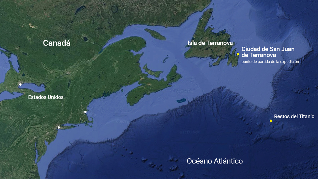 El submarino, llamado Titán, perdió el contacto con su buque nodriza Polar Prince el pasado domingo, alrededor de una hora y 45 minutos después del inicio de la inmersión. Los restos del famoso naufragio yacen a 3.800 metros de profundidad en el fondo del Atlántico, a unos 600 km de la costa de Terranova, Canadá.