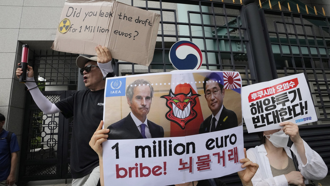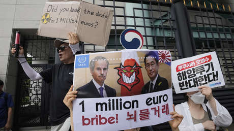 A la llegada al aeropuerto de la capital surcoreana, Grossi fue recibido por decenas de ciudadanos indignados que denunciaron el apoyo del OIEA a los planes de Tokio. "¡Desmantelar el OIEA!", "¡Las aguas residuales de Fukushima definitivamente llevarán a toda la humanidad al desastre!", decían los mensajes de reclamo en algunas de las pancartas.