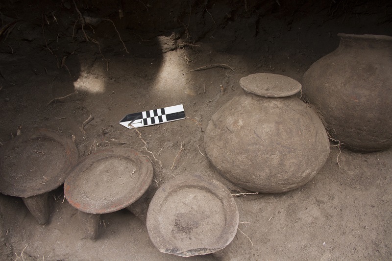 Encontraron que, conforme a la tradición funeraria de la época prehispánica, junto a las personas se enterraban como ofrenda los artefactos que utilizaban en vida. Por ello, además de las osamentas, se recuperaron miles de fragmentos cerámicos.