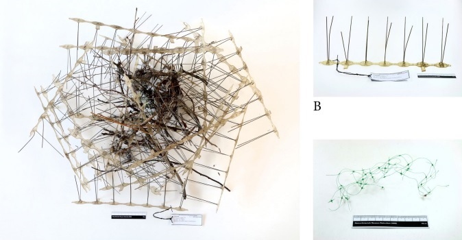 Luego de analizar la estructura de los nidos construidos con dispositivos antipájaros, los científicos descubrieron que las urracas colocan los pinchos a modo de cúpula, lo que sugiere el uso funcional de este material: ahuyentar a otras aves, así como proteger a los huevos y los polluelos de sus depredadores.