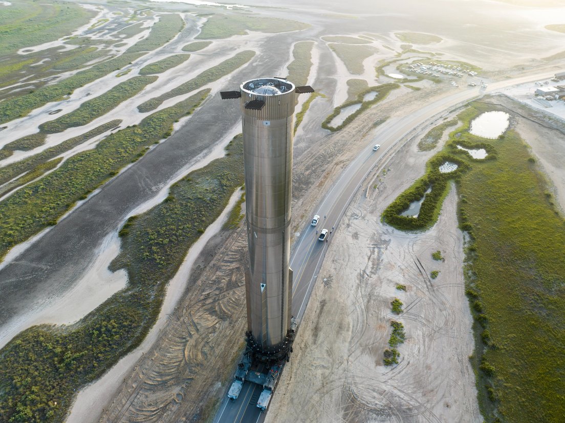 SpaceX trasladó la semana pasada el prototipo más reciente de su enorme propulsor Starship Super Heavy a la plataforma de lanzamiento orbital de Starbase en Boca Chica, Texas (EE.UU.), para realizar las pruebas previas al despegue.