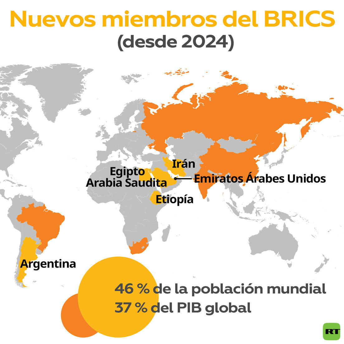 El bloque BRICS anunció este jueves la lista de países invitados a convertirse en nuevos miembros. De acuerdo con el presidente sudafricano, Cyril Ramaphosa, al bloque económico se sumarán Argentina, Egipto, Irán, Emiratos Árabes Unidos, Arabia Saudita y Etiopía.