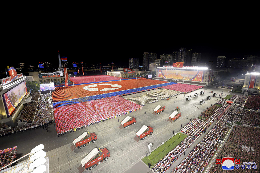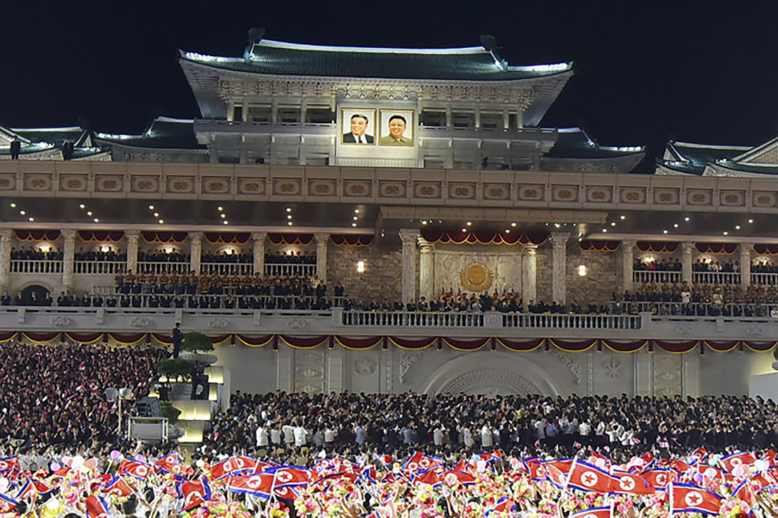 Kim presenció el evento junto a su hija, altos comandantes militares y funcionarios gubernamentales. Situado en uno de los balcones de la plaza, el líder norcoreano saludó "calurosamente a los manifestantes y participantes en las celebraciones que lo vitoreaban con entusiasmo".