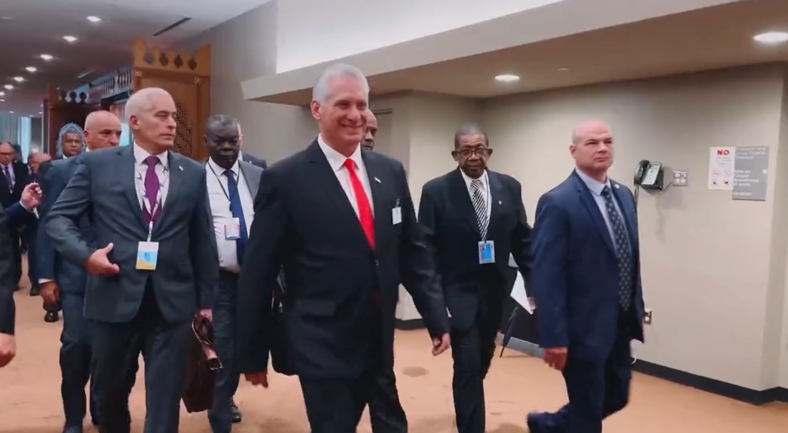 El mandatario viajó a la Asamblea General de la ONU con una delegación conformada, entre otros, por el canciller cubano, Bruno Rodríguez Parrilla, y el ministro de Salud Pública, José Ángel Portal Miranda.