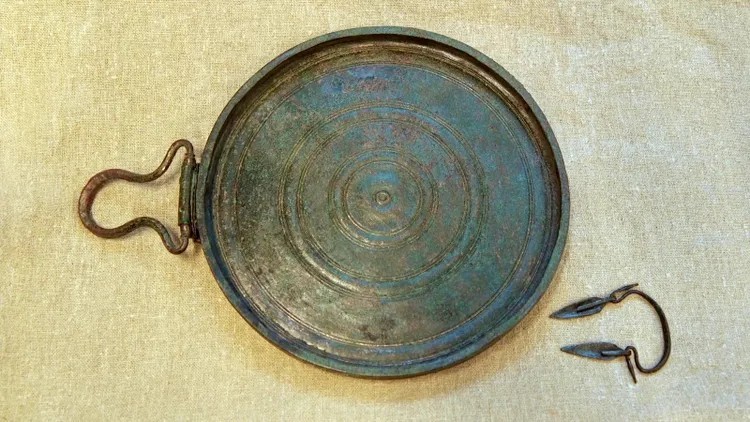 Espejos de este tipo habían sido encontrados anteriormente en entierros greco-helenísticos, lo que insinúa el origen griego de la mujer. Aunque estos accesorios suelen presentar grabados o relieves de figuras femeninas y diosas, el objeto está decorado en el exterior con un patrón simple de círculos concéntricos.