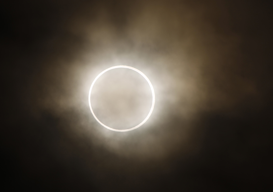 La Luna se alineó entre el Sol y la Tierra a una distancia adecuada para producir un eclipse solar en el que el satélite no cubrió completamente el disco de la estrella y dejando visible por unos minutos un brillante anillo de luz solar.
