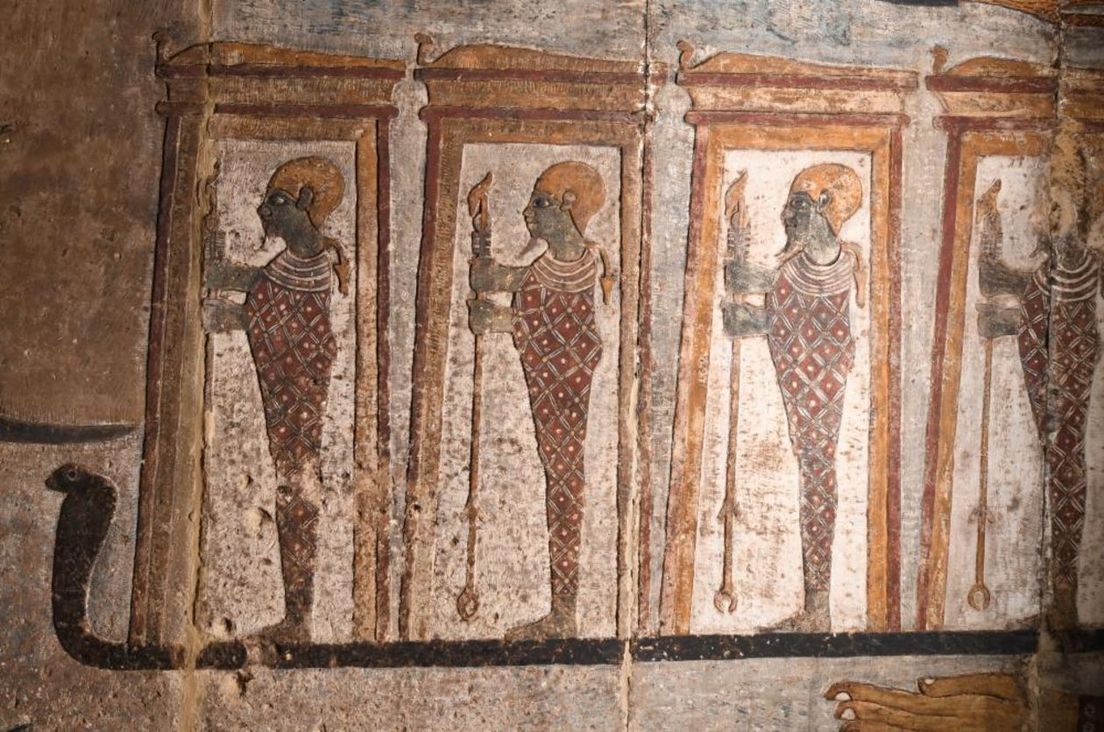 Entre las pinturas que recuperaron su colorido original destaca una de las deidades egipcias Orión (también llamada Sah), Sothis y Anukis yendo en barcos con la diosa del cielo Nut, en una representación que simboliza el antiguo Año Nuevo egipcio.