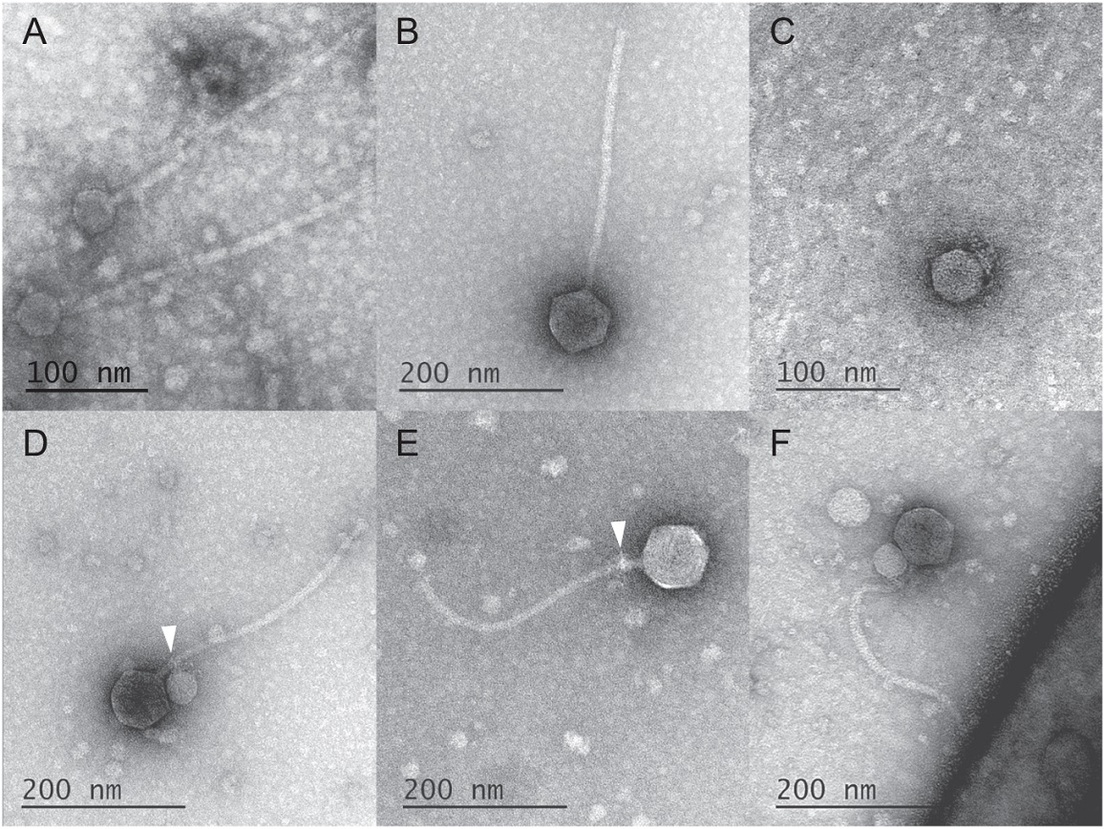 Con estas sospechas, el equipo llamó a Tagide deCarvalho, de la UMBC, para obtener una imagen de lo que estaba sucediendo con el microscopio electrónico de transmisión (TEM). "No todo el mundo tiene un TEM a su disposición", señala deCarvalho. La mayoría de los fagos constan de una "cabeza" con el ADN, un "cuello" de longitud variable y una "cola" por donde inyectan este material genético a la célula anfitriona.