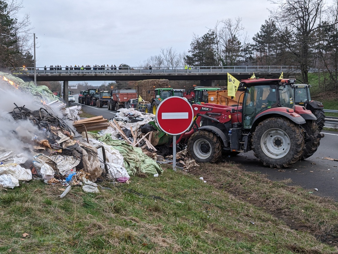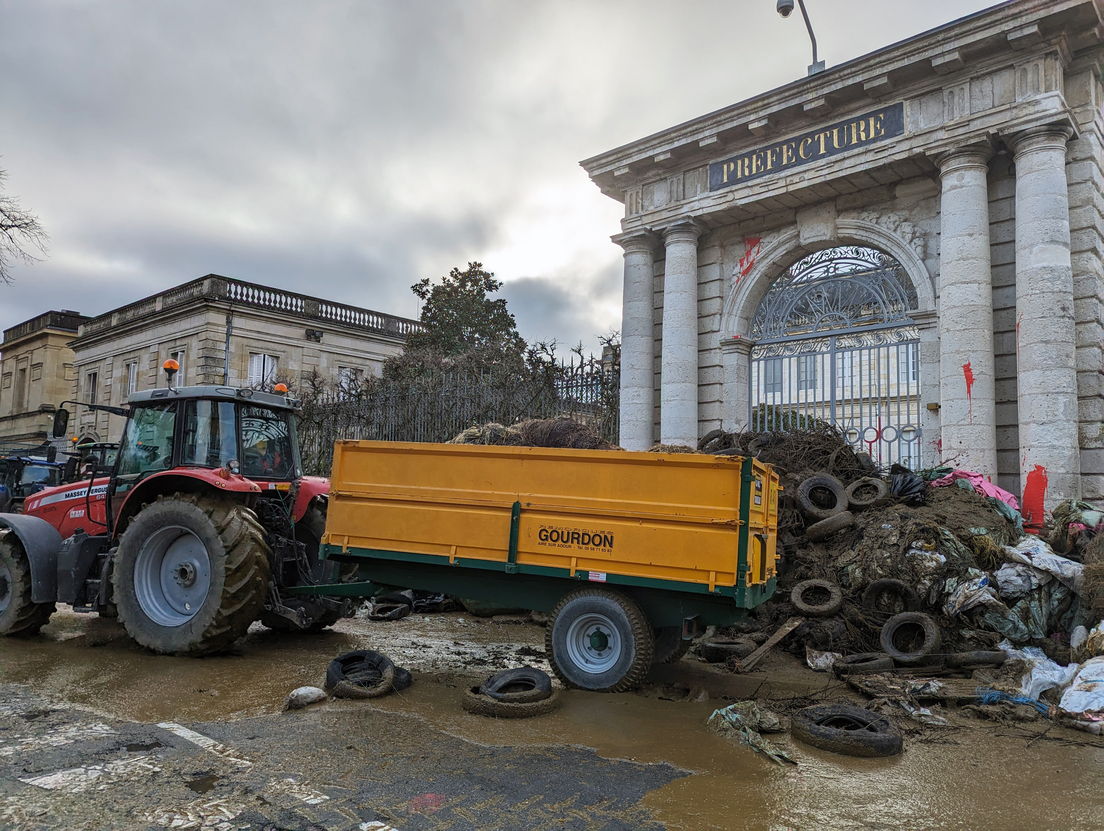 Los granjeros franceses llevan varios días manifestando su descontento con las políticas agrícolas del Gobierno de Emmanuel Macron y de la UE mediante el bloqueo de carreteras, concentraciones frente a edificios gubernamentales y marchas de tractores. En la ciudad de Agen, los granjeros arrojaron tripas, estiércol y otros desechos a las puertas de la sede administrativa del departamento de Lot y Garona, mientras diversos bloqueos de carreteras paralizaron el tráfico. Según FranceInfo, este miércoles se produjeron 300 kilómetros de atascos en todo el país.