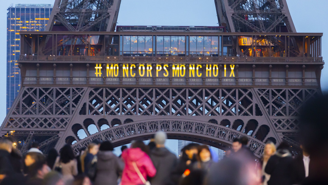 En el centro de París, la Torre Eiffel se iluminó para conmemorar el acontecimiento. En la fachada de la estructura se inscribió "#MonCorpsMonChoix", ("Mi cuerpo, mi elección"), consigna muy utilizada por los defensores del derecho al aborto.