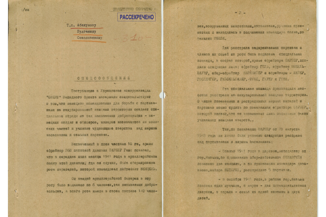El departamento del Servicio Federal de Seguridad de Rusia (FSB, por sus siglas en ruso) para la región de Smolensk ha desclasificado documentos de archivo sobre las ejecuciones masivas de civiles que realizaron los nazis durante la ocupación de Smolensk, como parte del proyecto Sin prescripción.