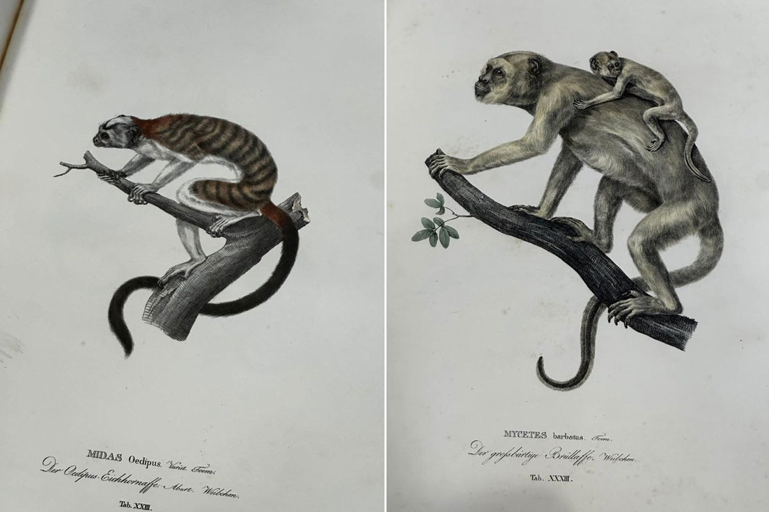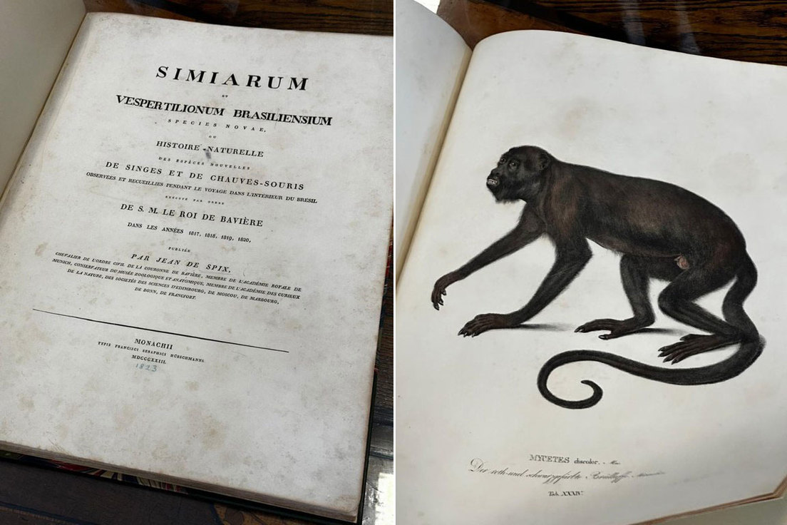 La obra 'Simiarum et vespertilionum Brasiliensium species novae', publicada por el zoólogo alemán Johann Baptist von Spix, en 1823, es uno de los ejemplares de una colección del autor sobre la fauna y flora de Brasil, con un foco predominante en los monos.