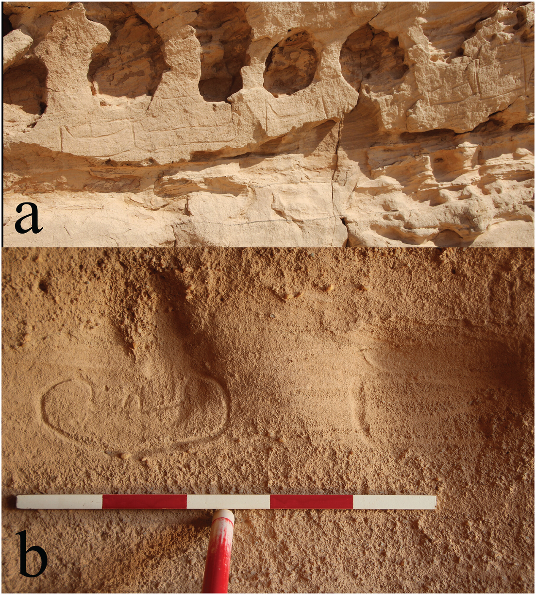 Las pinturas, que datan de hace 5.000 años, representan barcos y rebaños de ganado de los primeros pueblos, que más tarde abandonaron la zona bajo la presión de las condiciones del desierto, recoge la revista Cosmos.