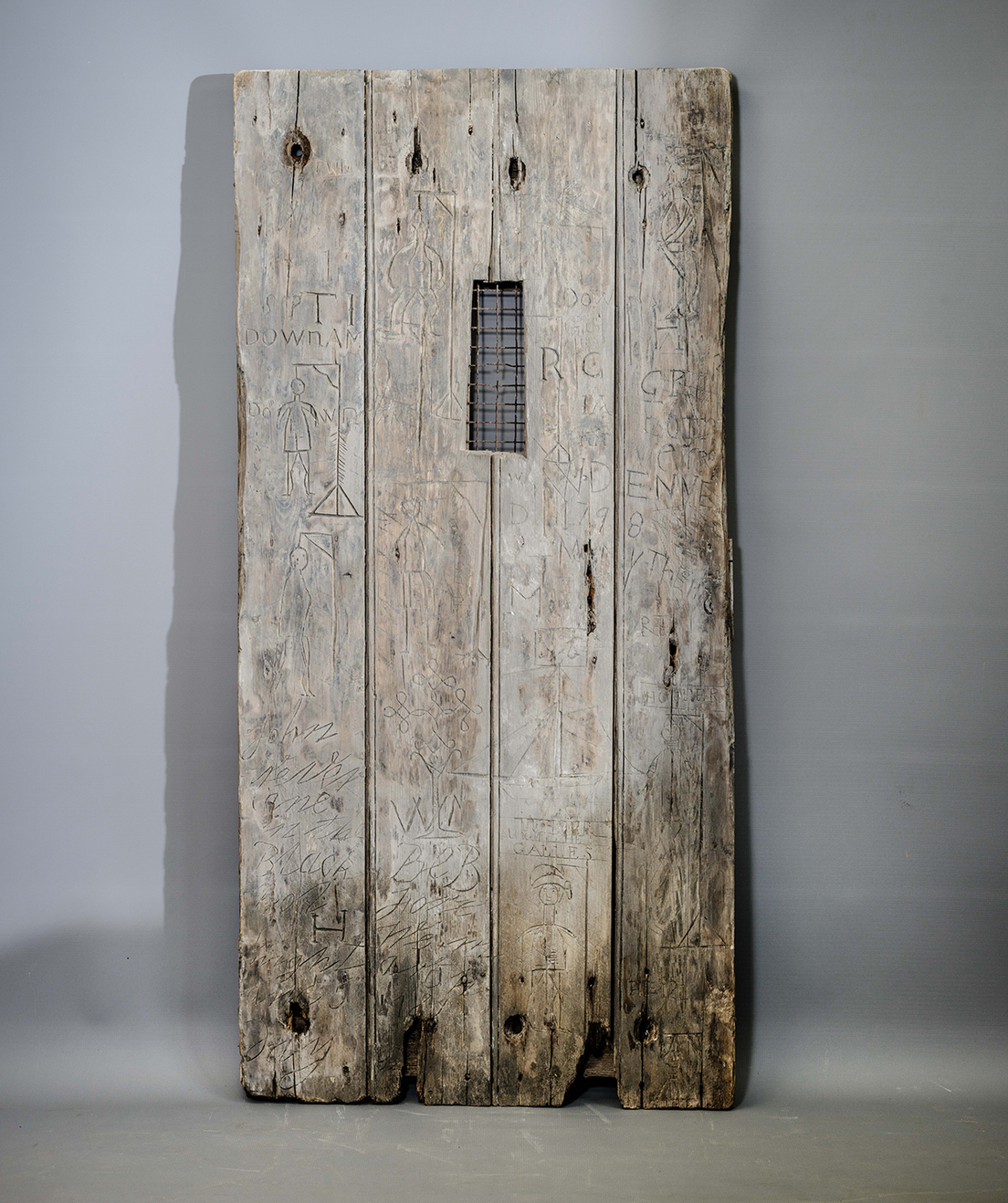 Otros grabados de la puerta, que data de alrededor de la década de 1790, representan la detallada imagen de un velero, la fecha de la Revolución francesa (1789), nueve macabras representaciones de ahorcamientos e innumerables iniciales, revela English Heritage.