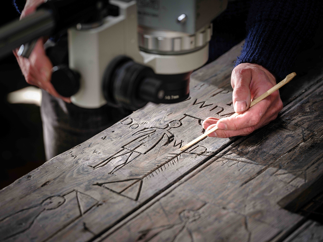 En una época de altas tensiones, pero con muchas "horas que matar", los soldados practicaron sus "dudosos talentos artísticos, tallando más de 50 grafitis en la puerta de la torre con cuchillos o posiblemente bayonetas", sugieren expertos británicos.