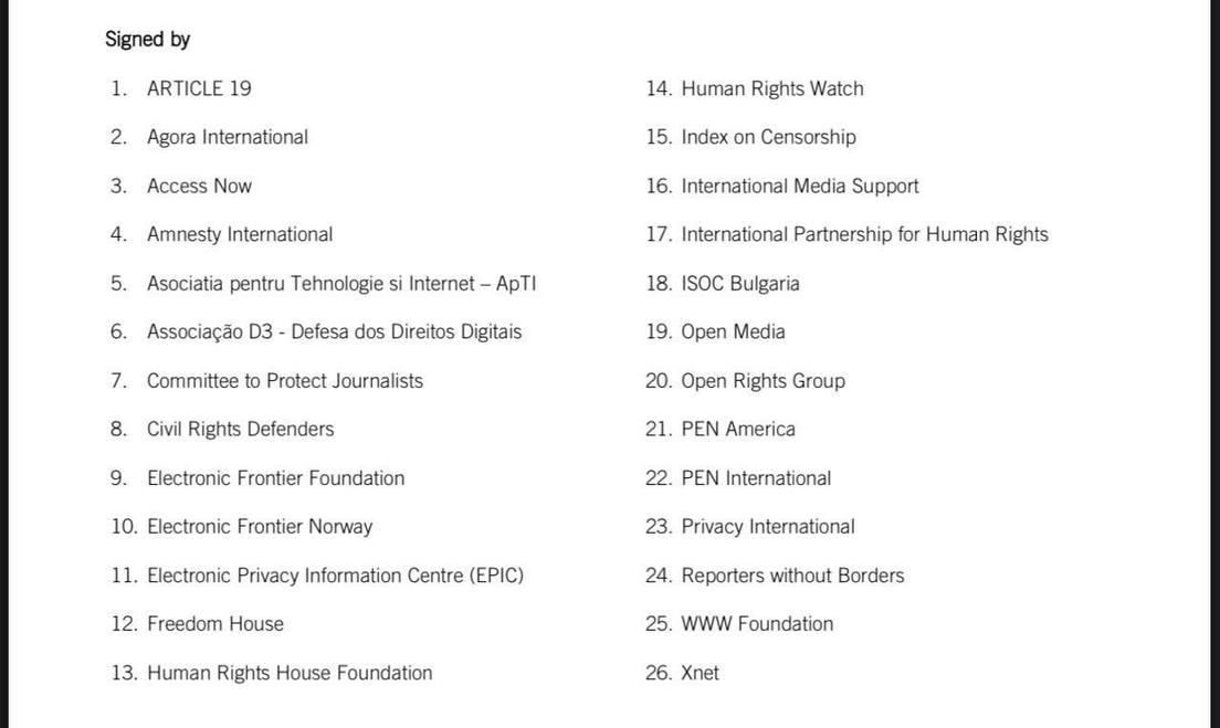 "Estas ONG occidentales pidieron a las autoridades rusas que dejaran de poner obstáculos al trabajo de Telegram. Pidieron a la ONU, al Consejo de Europa, la OSCE, la Unión Europea, EE.UU. y los gobiernos de otros países que se opusieran a las acciones de Rusia y protegieran los derechos fundamentales de libertad de expresión y privacidad", comentó la vocera.