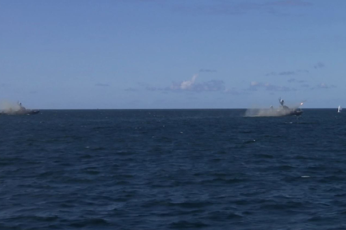 Además de la mencionada maniobra, los marineros del buque completaron con éxito un complejo de tiro de artillería contra varios objetivos con el uso práctico de armas.