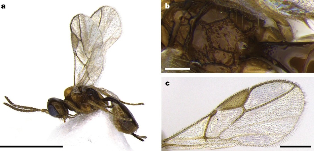 La especie fue descubierta en marzo de 2023 durante unas pruebas a moscas de la fruta común ('Drosophila affinis') en busca de gusanos parásitos. Los científicos quedaron asombrados al ver que una de las moscas tenía una larva de avispa en su abdomen y comenzaron un experimento específico en el que se confirmó el descubrimiento.
