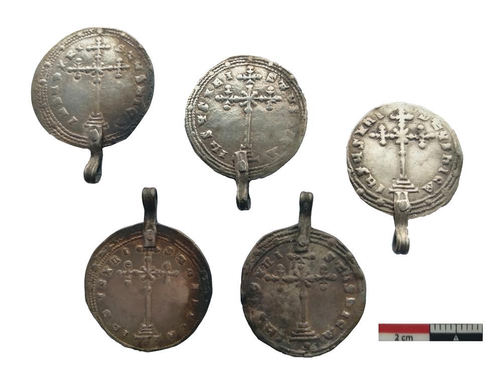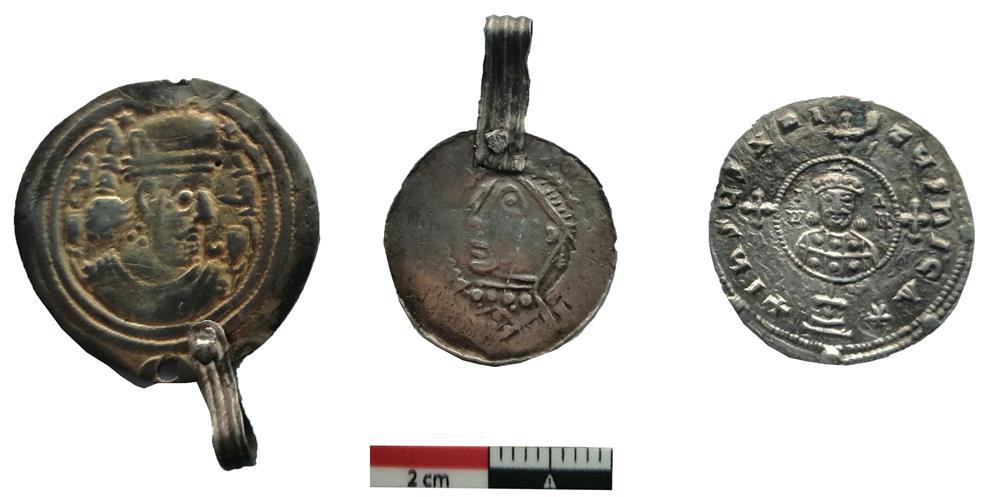 Entre otras monedas, destacan un dracma sasánida de Cosroes II (591–628), un denario alemán del emperador Otón I (936–973) y nueve miliaresias bizantinas: ocho del emperador Constantino VII Porfirogéneta (945–959) y uno de Juan I Tzimisces (969–976).