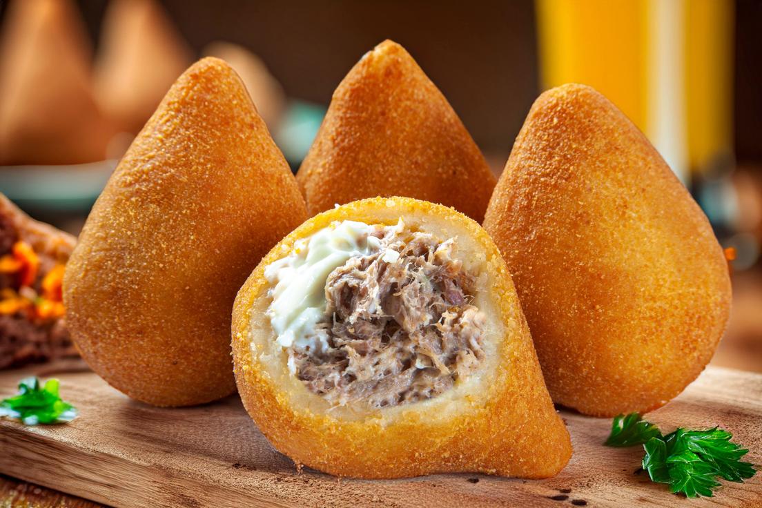 La coxinha (término que significa literalmente 'muslo pequeño'), es una croqueta rellena con carne de pollo y queso crema, que se fríe tras haberle dado forma de muslo y haberla pasado por huevo y pan rallado.